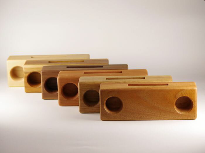 商品名 iPhone 木製スピーカースタンド 2つ穴 材質 ウォールナット、オーク、チェリー、チーク、マホガニー、メープル サイズ 幅190×奥行46×高さ67mm 対応機種 iPhone8、iPhone8 plus、iPhone7、iPhone7 plus、iPhone SE、6s、6s plus、6、6plus、5S、5C、5、4S、4 iPod touch(第5世代 2012年発売 以降 ※スピーカー部分が本体下側) ※本商品は、すべての保護ケースを装着したiPhoneに使用できるものではありません。