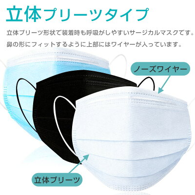マスク 50枚 +1枚入り サージカルマスク 51枚セット ふつうサイズ ブラックマスク 使い捨て 不織布マスク レギュラーサイズ 黒 白 ホワイト ブルー 青 男女兼用
